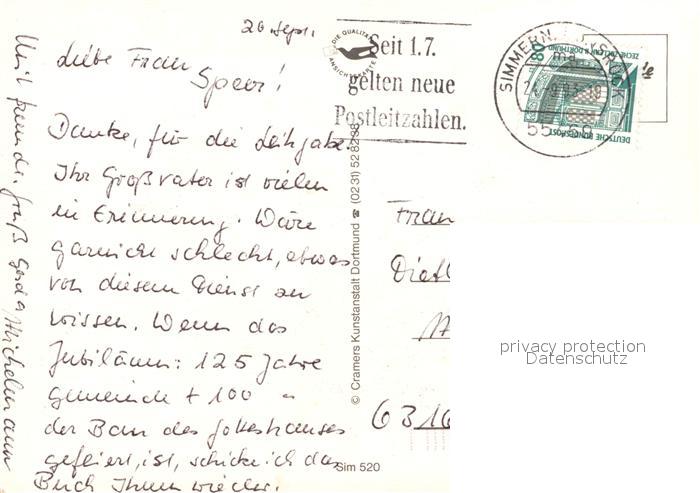 73243111 alte Postkarte Simmern Hunsrueck Schlosstrasse Schlossplatz Stefanskirche Vor dem Tor Oberstrasse postalisch gelaufen Erhaltung siehe scans [KathaD81] KatCode: 11110007140144