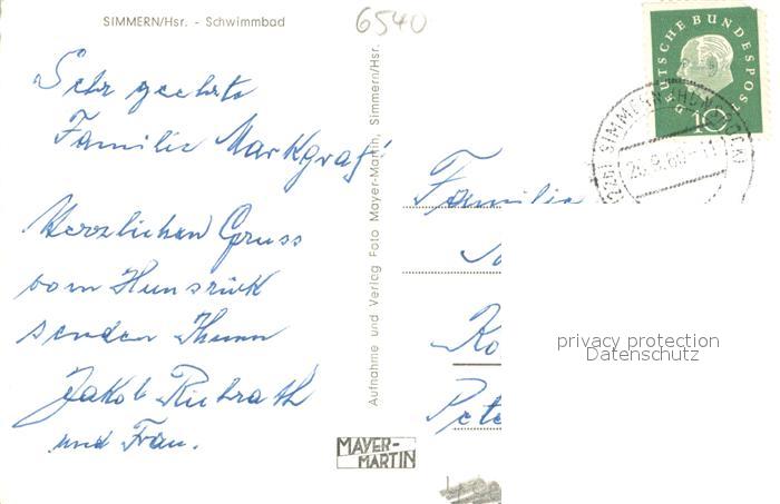 73754267 alte Postkarte Simmern Hunsrueck Schwimmbad postalisch gelaufen Erhaltung siehe scans [LiesaD40] KatCode: 11110007140144