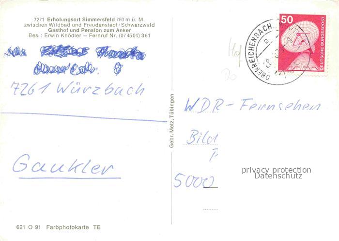 74096445 Simmersfeld CALW BW Gasthof Zum Anker postalisch gelaufen Erhaltung siehe scans [WerneD78] alte Postkarte Wern Katcode 11110008235066