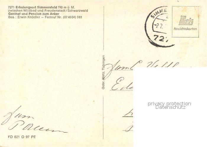 73664825 alte Postkarte Simmersfeld Gasthof zum Anker Liegewiese Gastraeume postalisch gelaufen Erhaltung siehe scans [WerneD78] KatCode: 11110008235066