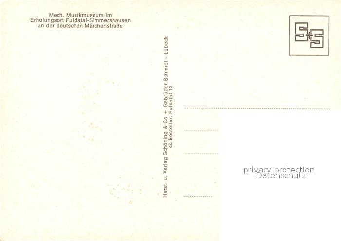 73571494 Simmershausen Fuldatal Mech Musikmuseum postalisch nicht gelaufen Erhaltung siehe scans [WerneD78] KatCode: 11110006633009