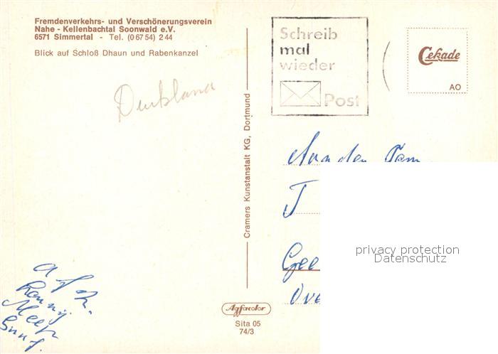 72934710 alte Postkarte Simmertal Blick auf Schloss Dhaun und Rabenkanzel postalisch gelaufen Erhaltung siehe scans [FriedD77] KatCode: 11110007133096