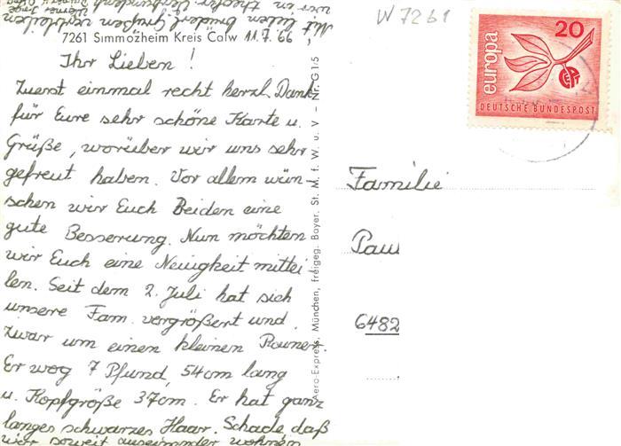 73974410 alte Postkarte Simmozheim Fliegeraufnahme postalisch gelaufen Erhaltung siehe scans [FriedD77] KatCode: 11110008235067