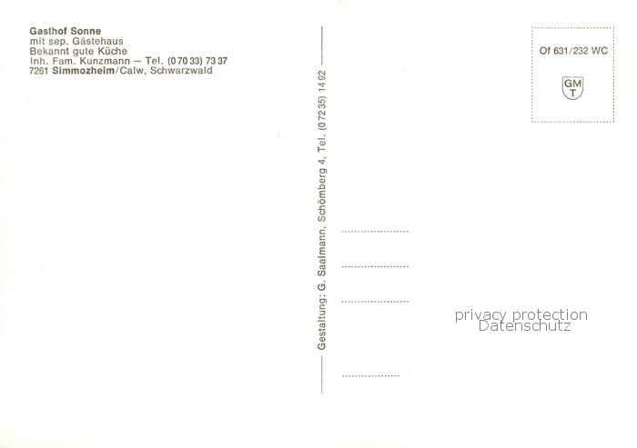 73844740 Simmozheim Gasthof Sonne Gastraeume postalisch nicht gelaufen Erhaltung siehe scans [WerneD78] KatCode: 11110008235067