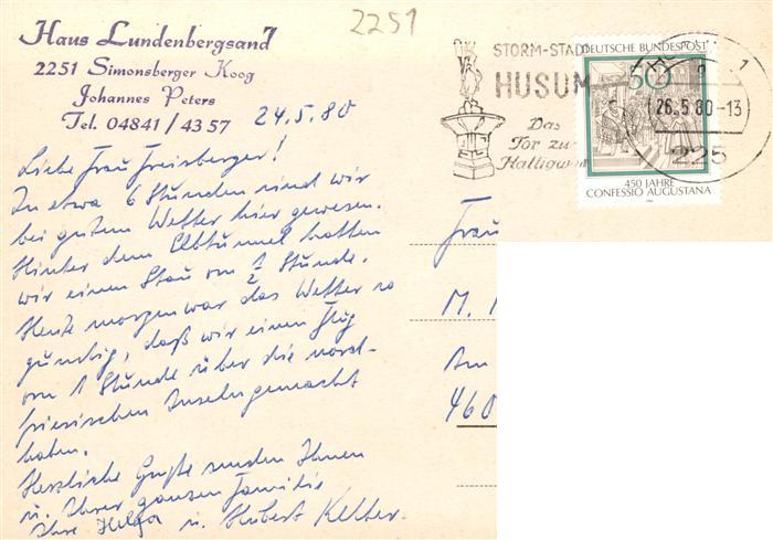 73895107 Simonsberger Koog Hotel Lundenbergsand postalisch gelaufen Erhaltung siehe scans [WerneD78] alte Postkarte Wern Katcode 11110001054120