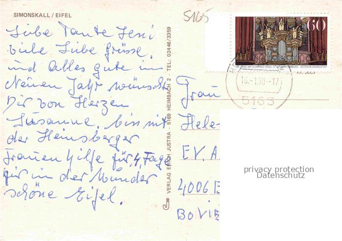 74100646 alte Postkarte Simonskall Talblick Panorama Bruecken Fachwerkhaus postalisch gelaufen Erhaltung siehe scans [WerneD78] KatCode: 11110005358016