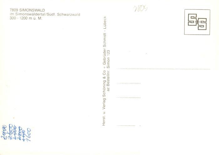 73928989 Simonswaeldertal Simonswald Blick vom Neuenberg Kirche Ortsteil Eichhof Kapelle Alte oelmuehle Obersimonswald Zweribachfall Haslachtal postalisch nicht gelaufen Erhaltung siehe scans [FriedD77] Frie Katcode 11110008316042