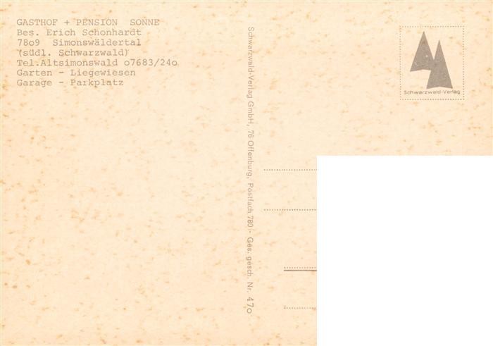 73919702 Simonswaeldertal Simonswald Gasthof Pension Sonne Gartenterrasse postalisch nicht gelaufen Erhaltung siehe scans [FriedD77] Frie Katcode 11110008316042