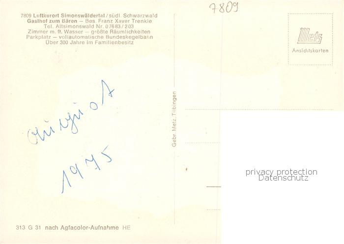 73870869 Simonswaeldertal Simonswald Gasthof zum Baeren postalisch nicht gelaufen Erhaltung siehe scans [WerneD78] Wern Katcode 11110008316042