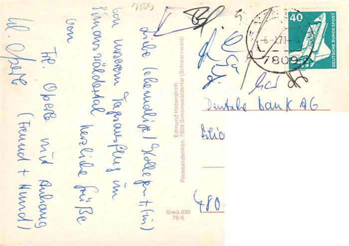 73932811 Simonswaeldertal Simonswald Panorama Hauptstrasse OT Neuenberg Kandel OT Haslach postalisch gelaufen Erhaltung siehe scans [FriedD77] alte Postkarte Frie Katcode 11110008316042