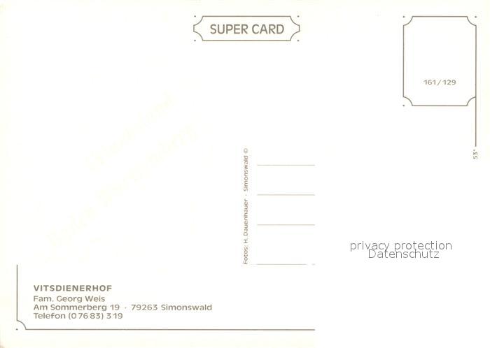 73649801 Simonswaeldertal Simonswald Vitsdienerhof im Schwarzwald Gastraum postalisch nicht gelaufen Erhaltung siehe scans [FriedD77] KatCode: 11110008316042