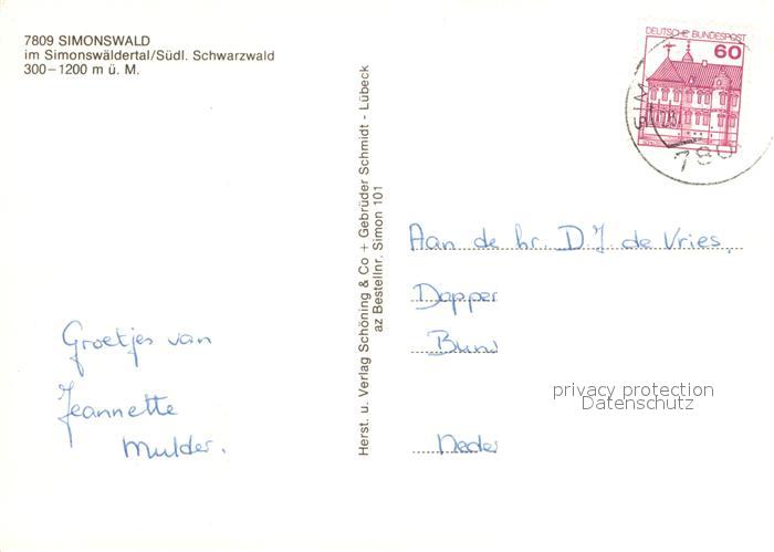72931011 Simonswald Blick vom Neuenberg Ortsteil Eichhof postalisch nicht gelaufen Erhaltung siehe scans [WerneD78] KatCode: 11110008316042