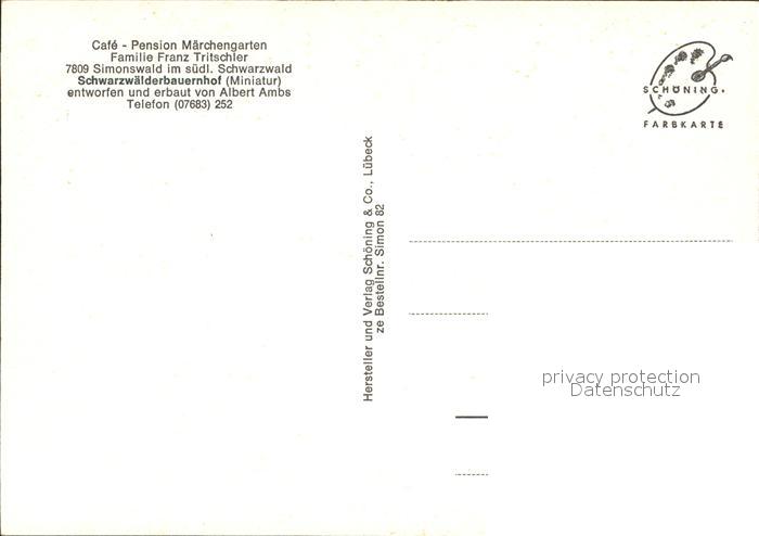 72496259 Simonswald Cafe Maerchengarten Schwarzwaelder Bauernhof Miniatur postalisch nicht gelaufen Erhaltung siehe scans KatCode: 11110008316042
