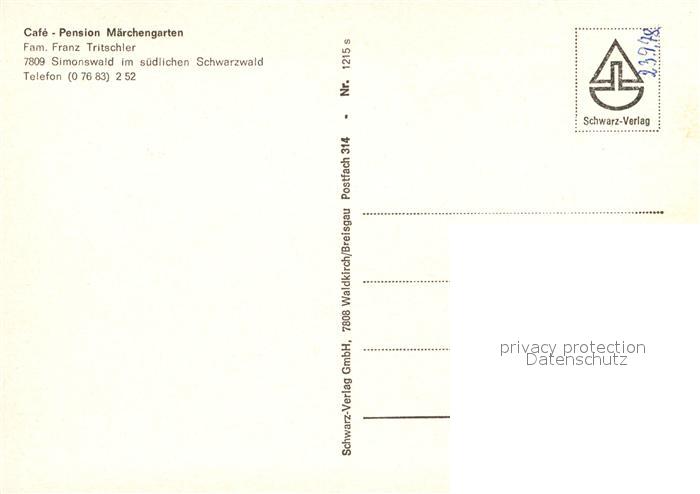73024436 Simonswald Cafe Maerchengarten postalisch nicht gelaufen Erhaltung siehe scans [PaolaD17] KatCode: 11110008316042