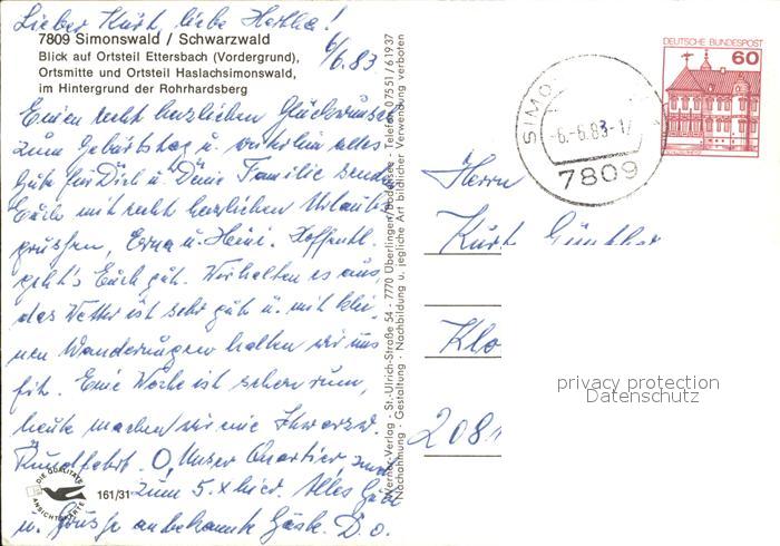 72415148 alte Postkarte Simonswald Ettersbach postalisch gelaufen Erhaltung siehe scans KatCode: 11110008316042