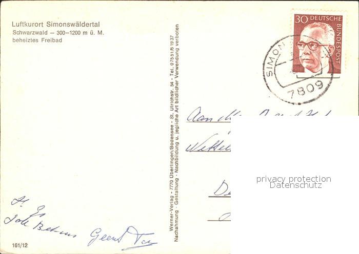 72271526 alte Postkarte Simonswald Freibad postalisch gelaufen Erhaltung siehe scans KatCode: 11110008316042