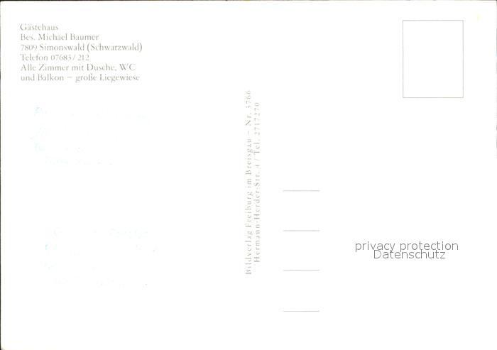 72103511 Simonswald Gastehaus Michael Baumer postalisch nicht gelaufen KatCode: 11110008316042