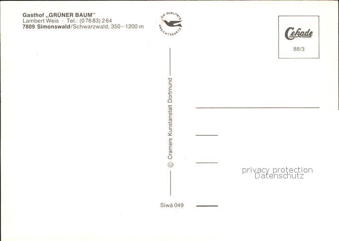 71830330 Simonswald Gasthof Gruener Baum postalisch nicht gelaufen Erhaltung siehe scans KatCode: 11110008316042