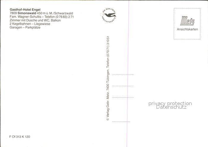 72568536 Simonswald Gasthof Hotel Engel postalisch nicht gelaufen Erhaltung siehe scans [KathaD79] KatCode: 11110008316042