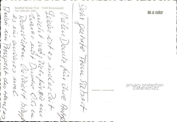 72285599 Simonswald Gasthof Krone Post postalisch nicht gelaufen Erhaltung siehe scans KatCode: 11110008316042