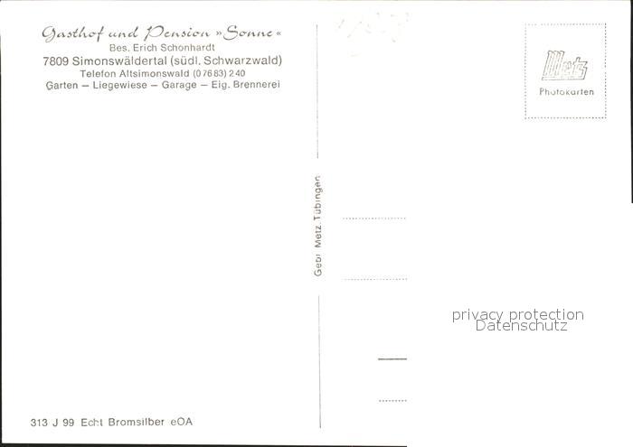 41768053 Simonswald Gasthof Pension Sonne postalisch nicht gelaufen KatCode: 11110008316042
