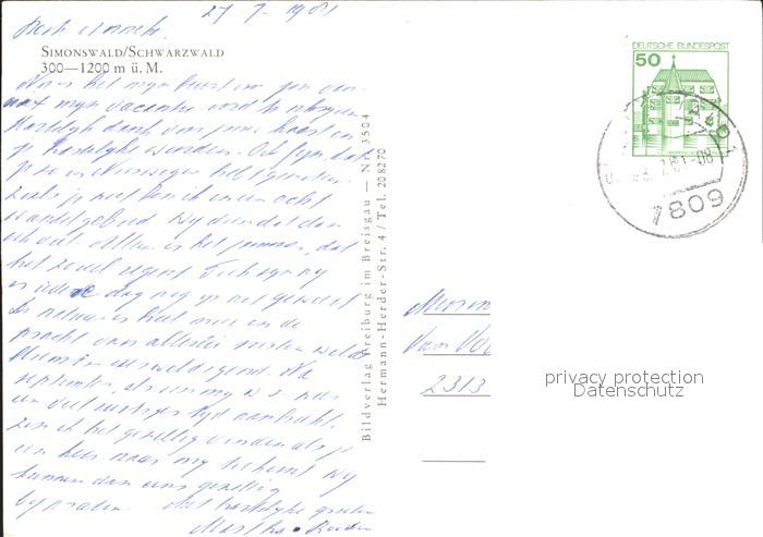 72245247 alte Postkarte Simonswald Gesamtansicht postalisch gelaufen Erhaltung siehe scans KatCode: 11110008316042