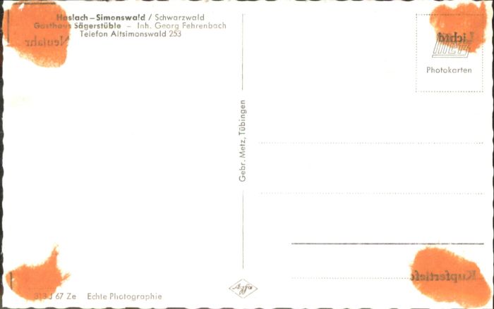 40809189 Simonswald Haslach Gasthaus Sägerstüble * KatCode 11110008316042
