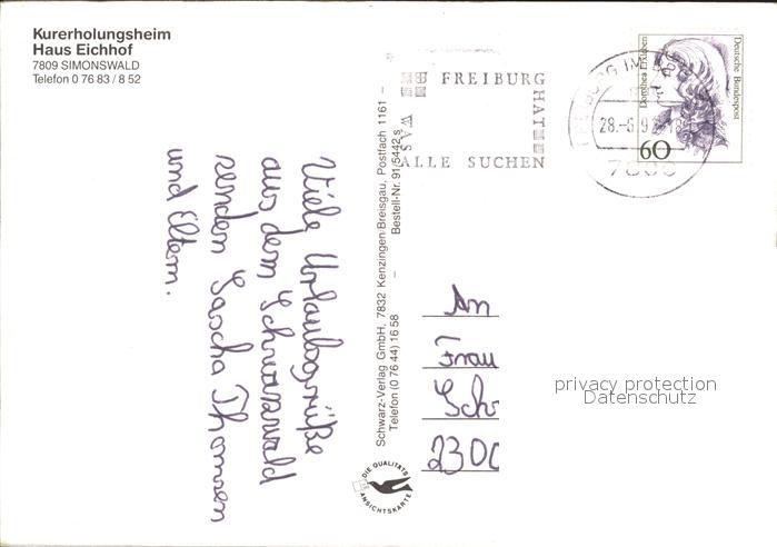 72321461 alte Postkarte Simonswald Kurerholungsheim Haus Eichhof postalisch gelaufen Erhaltung siehe scans KatCode: 11110008316042