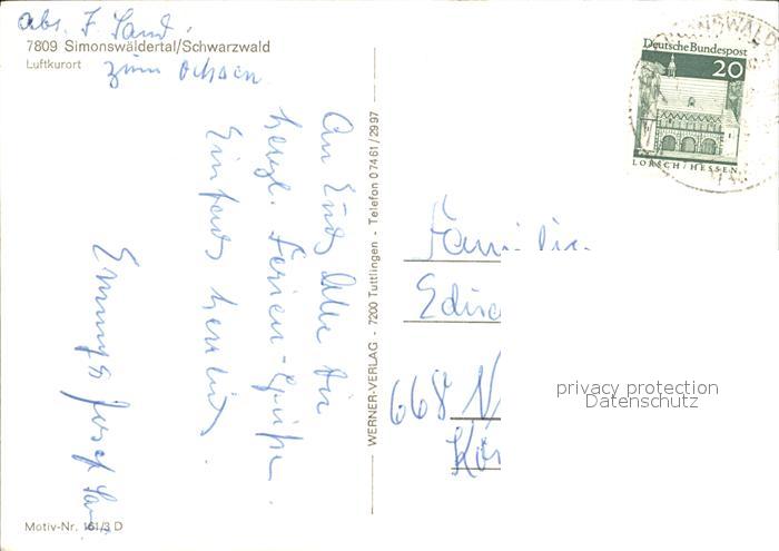72099039 alte Postkarte Simonswald Luftkurort Simonswaeldertal Schwarzwald postalisch gelaufen Erhaltung siehe scans KatCode: 11110008316042