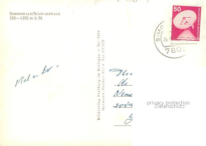 73311295 alte Postkarte Simonswald Panorama postalisch gelaufen Erhaltung siehe scans [KathaD81] KatCode: 11110008316042