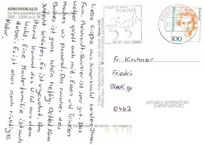 72857389 alte Postkarte Simonswald Panorama Gasthaeuser Kapelle postalisch gelaufen Erhaltung siehe scans [WerneD78] KatCode: 11110008316042