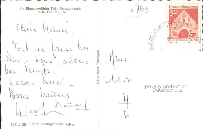 71912829 alte Postkarte Simonswald Partie im Simonswaeldertal Schwarzwaelder Trachtenmaedchen postalisch gelaufen Erhaltung siehe scans KatCode: 11110008316042