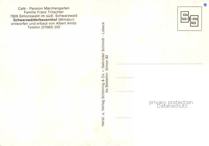 72780396 Simonswald Schwarzwaelderbauernhof Miniaturpark Cafe Pension Maerchengarten postalisch nicht gelaufen Erhaltung siehe scans [FriedD77] KatCode: 11110008316042