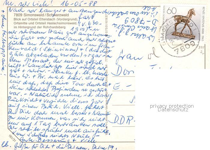 73574231 alte Postkarte Simonswald Simonswaeldertal Blick auf Ettersbach Haslachsimonswald und Rohrhardsberg postalisch gelaufen Erhaltung siehe scans [WerneD78] KatCode: 11110008316042