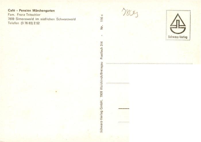 73932615 Simonswald Simonswaeldertal Café Pension Maerchengarten postalisch nicht gelaufen Erhaltung siehe scans [FriedD77] KatCode: 11110008316042