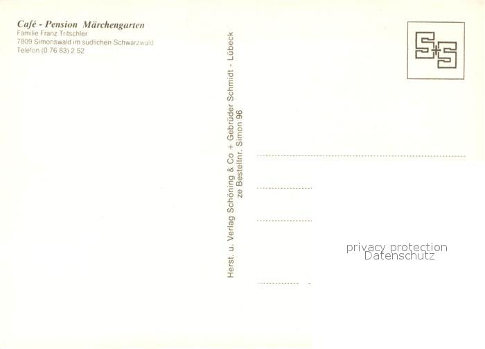 73332205 Simonswald Simonswaeldertal Cafe Pension Maerchengarten postalisch nicht gelaufen Erhaltung siehe scans [LiesaD40] KatCode: 11110008316042