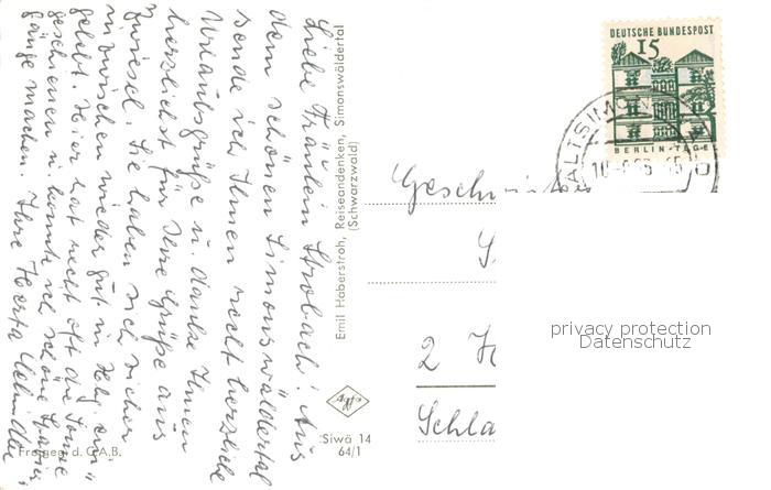 73764588 alte Postkarte Simonswald Simonswaeldertal Fliegeraufnahme postalisch gelaufen Erhaltung siehe scans [WerneD78] KatCode: 11110008316042