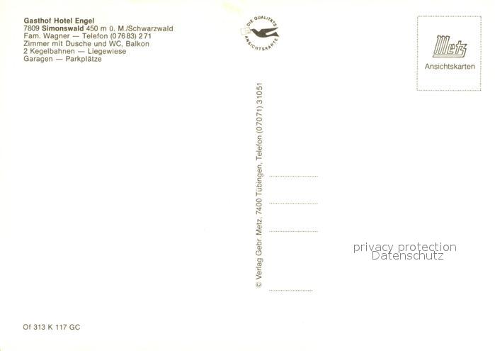 73615837 Simonswald Simonswaeldertal Gasthof Hotel Engel postalisch nicht gelaufen Erhaltung siehe scans [WerneD78] KatCode: 11110008316042