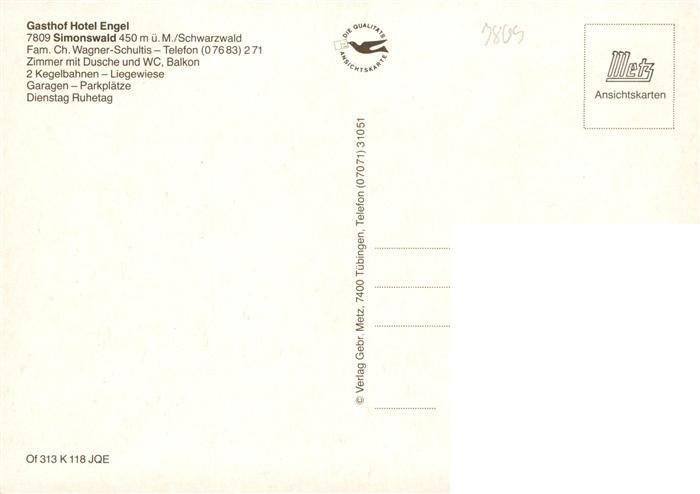 73932827 Simonswald Simonswaeldertal Gasthof Hotel Engel Gastraeume postalisch nicht gelaufen Erhaltung siehe scans [FriedD77] KatCode: 11110008316042