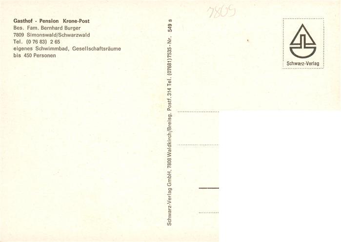 73928991 Simonswald Simonswaeldertal Gasthof Krone Post Gastraum Schwimmbad postalisch nicht gelaufen Erhaltung siehe scans [FriedD77] KatCode: 11110008316042