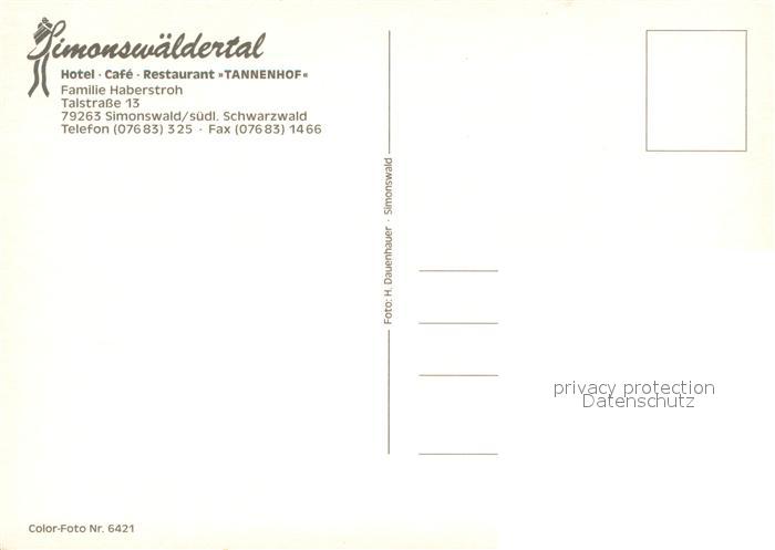 73645381 Simonswald Simonswaeldertal Hotel Cafe Restaurant Tannenhof postalisch nicht gelaufen Erhaltung siehe scans [WerneD78] KatCode: 11110008316042