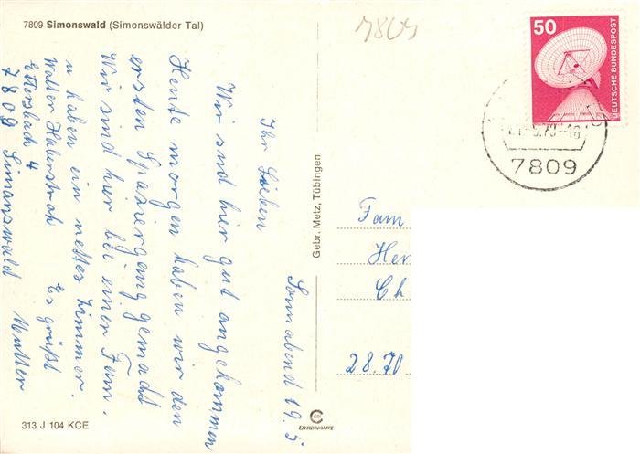 73929014 alte Postkarte Simonswald Simonswaeldertal Panorama Kirche Ortspartie Kapelle Schwimmbad postalisch gelaufen Erhaltung siehe scans [FriedD77] KatCode: 11110008316042