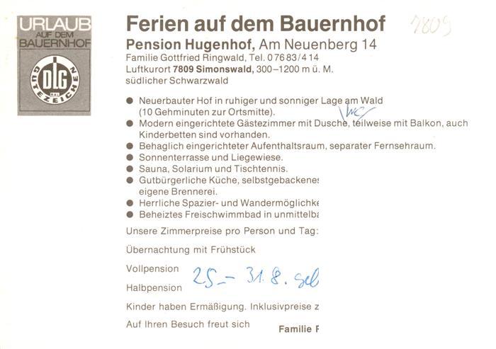 73929006 Simonswald Simonswaeldertal Pension Hugenhof Gastraum Panorama postalisch nicht gelaufen Werbekarte (keine Postkarte) Erhaltung siehe scans [FriedD77] KatCode: 11110008316042