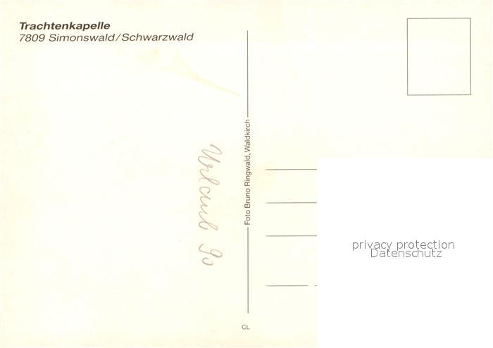 73070713 Simonswald Trachtenkapelle Schwarzwald postalisch nicht gelaufen Erhaltung siehe scans [FriedD77] KatCode: 11110008316042
