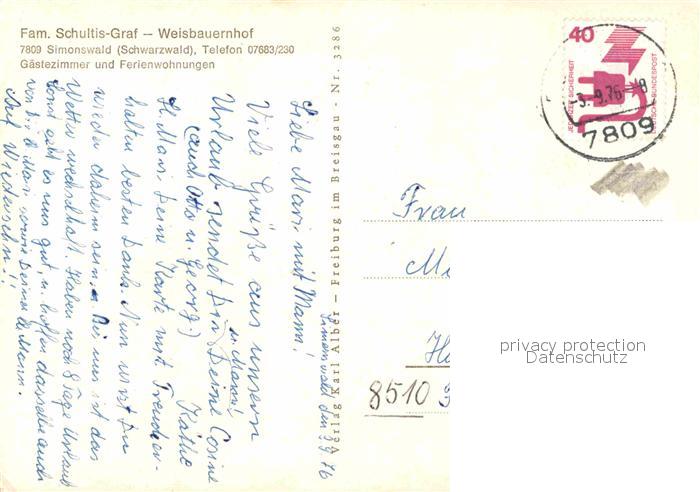 72842797 alte Postkarte Simonswald Weisbauernhof postalisch gelaufen Erhaltung siehe scans [AndreD76] KatCode: 11110008316042