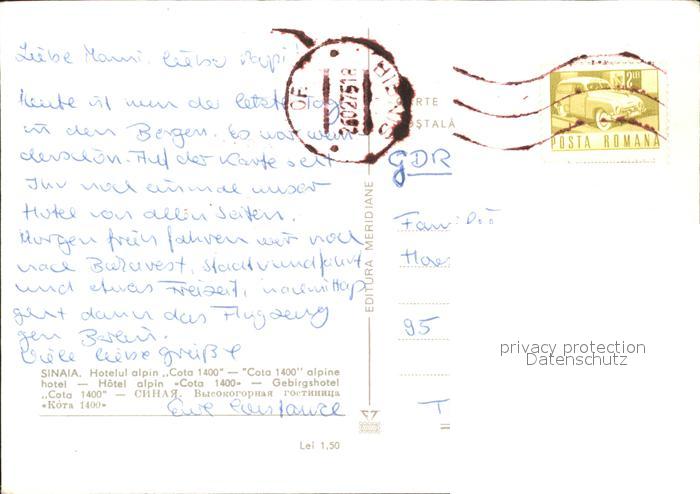old postcard Sinaia Hotel Alpin Cota Luftseilbahn postalisch gelaufen Erhaltung siehe scans