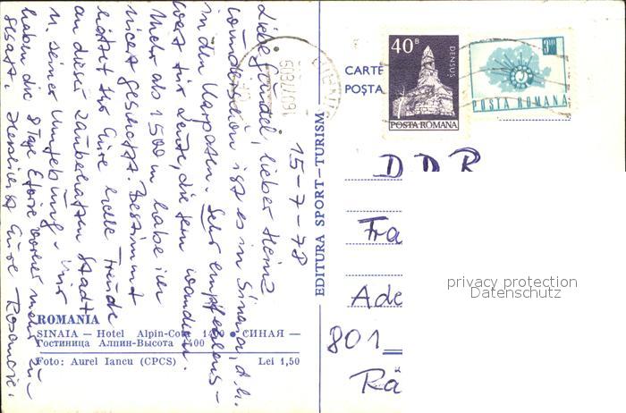old postcard Sinaia Hotel Alpin Cota Seilbahn postalisch gelaufen Erhaltung siehe scans
