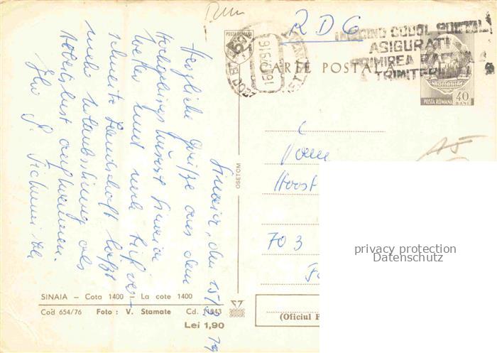 74142370 old postcard Sinaia RO Berghotel Blick ins Tal Hotelul alpin Cota 1400 postalisch gelaufen Erhaltung siehe scans [FriedD77] KatCode: 11430
