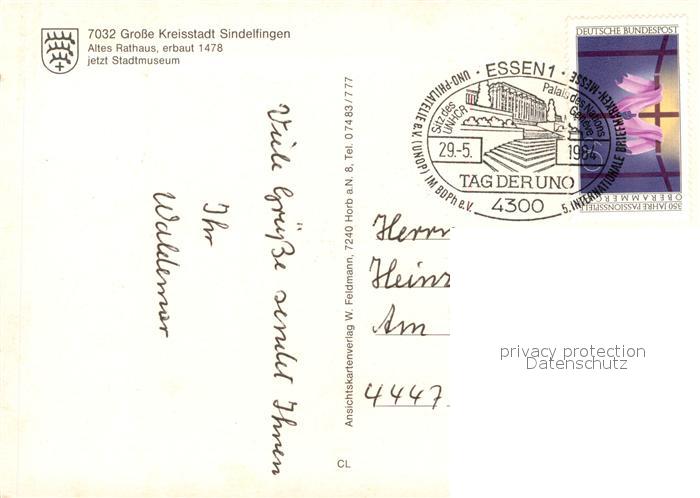 73122114 alte Postkarte Sindelfingen Altes Rathaus postalisch gelaufen Erhaltung siehe scans [NatalD47] KatCode: 11110008115045