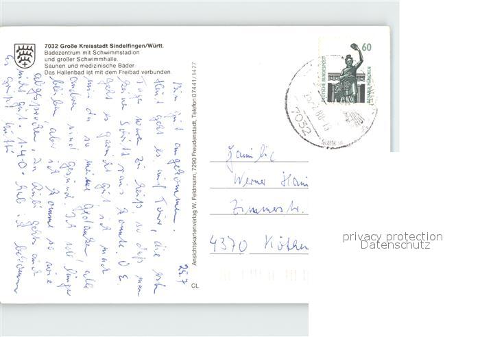 72362233 alte Postkarte Sindelfingen Badezentrum Schwimmhalle postalisch gelaufen Erhaltung siehe scans KatCode: 11110008115045